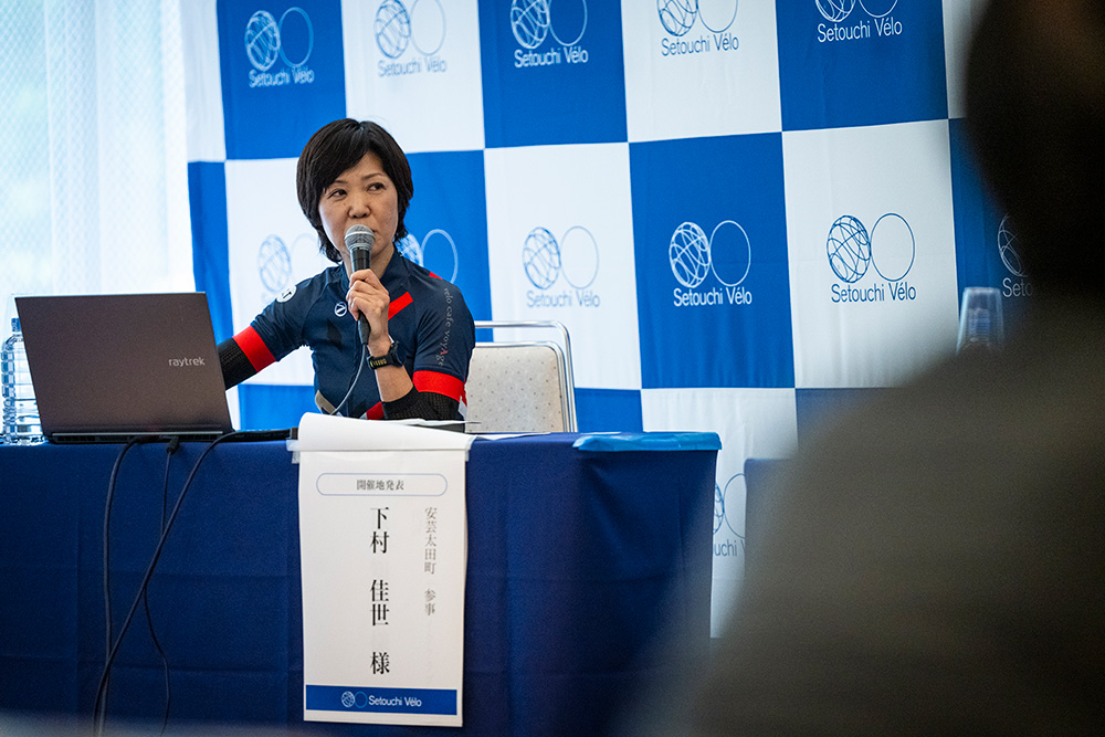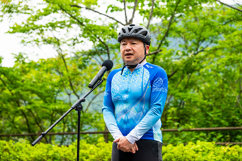近年は町独自のサイクルイベントを開催しつつ、昨年度からはSetouchi Vélo協議会にも参画。海側中心だった広島県内のサイクルツーリズムを、山側へも広げる契機として、町として積極的に関わる姿勢が示された。また、舗装路だけでなく、未舗装の山間ルートの開拓にも意欲を見せた。町長は、安芸太田町が中山間地域のサイクルツーリズムモデルとなることを目指し、今後も広島県や協議会関係者と連携を深めながら取り組みを進めていく考えを示し、歓迎のあいさつを締めくくった。