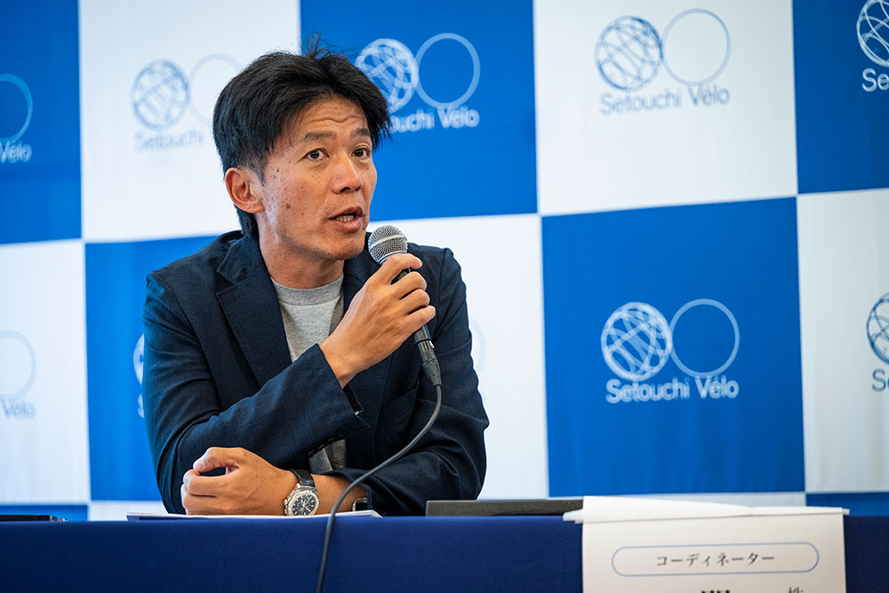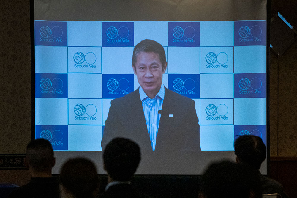次に挨拶に立った本州四国連絡高速道路株式会社 地域連携部長の村岡良文氏は、サイクルツーリズム推進への継続的な支援と、関係者への感謝の意を述べた。市町村ミーティングは今回で第8回を数え、地域の魅力を再発見し、課題を共有することを目的に、関係者とともに開催されてきた。また、サイクリストを支援する「Setouchi Véloスポット」の拡充や、「シェア・ザ・ロード」活動の推進にも触れ、今後は中国・四国地域を横断する広域的な展開を進めていく方針が示された。
