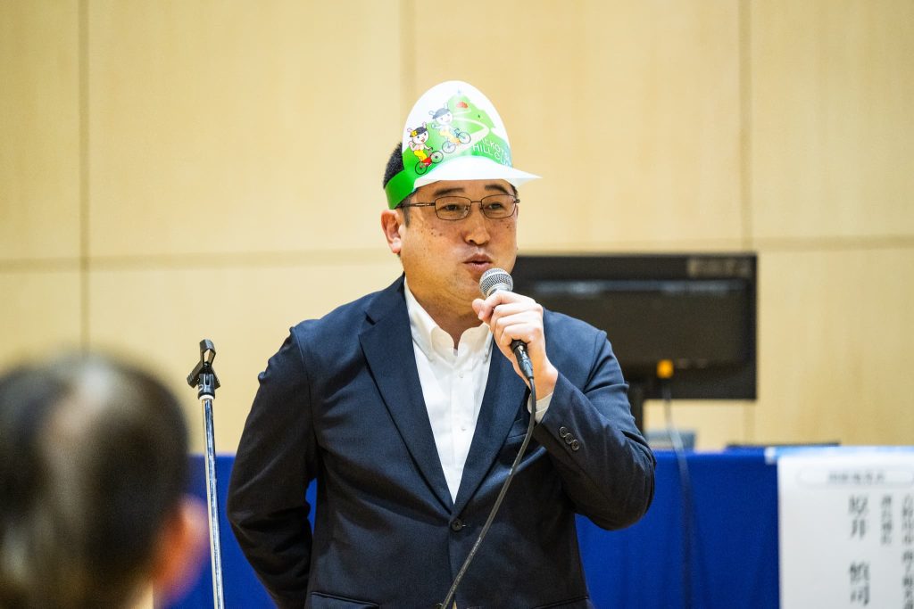 その起爆剤の一つとして挙げられたのが、高越山で開催したヒルクライムレースである。原井市長は自ら制作したPR用の帽子を紹介しながら、自転車イベントを通じた機運醸成への意欲を語った。行政主導で始まった取り組みを、いずれは市民や職員が自発的に担う段階へと発展させたいという思いもにじませ、「本日の議論が実り多い機会となることを期待する」と締めくくった。