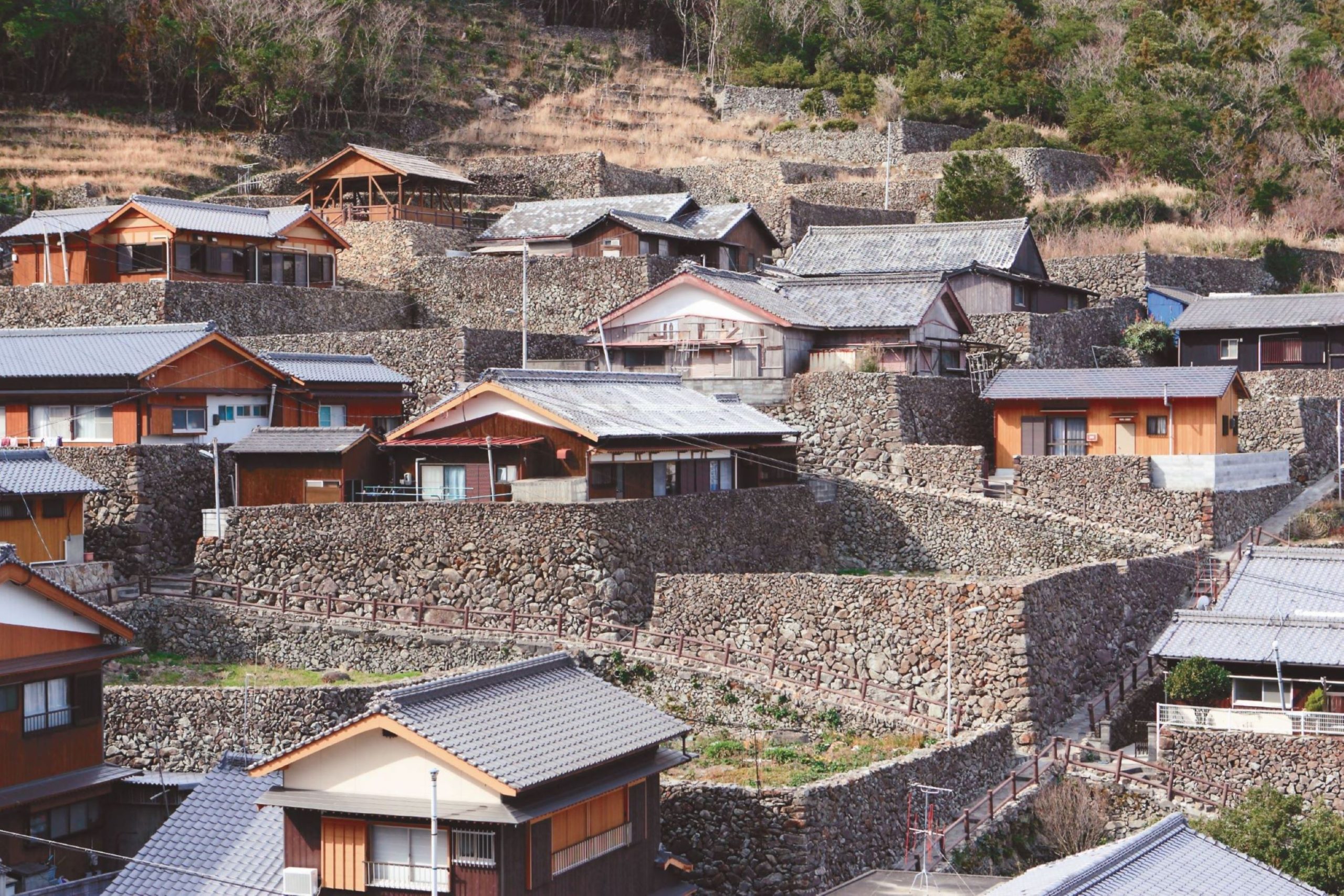 内泊、中泊の昔ながらの漁村風景が続く集落と、リアス式海岸特有の入り組んだ海岸線が作り出す景色を眺めながら折り返し地点の外泊地区へ。冬の季節風を防ぐため高い石垣で囲まれた城砦のような石垣集落は見ごたえがあるコース。